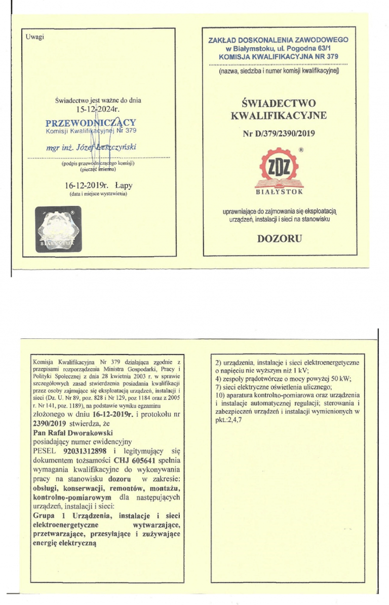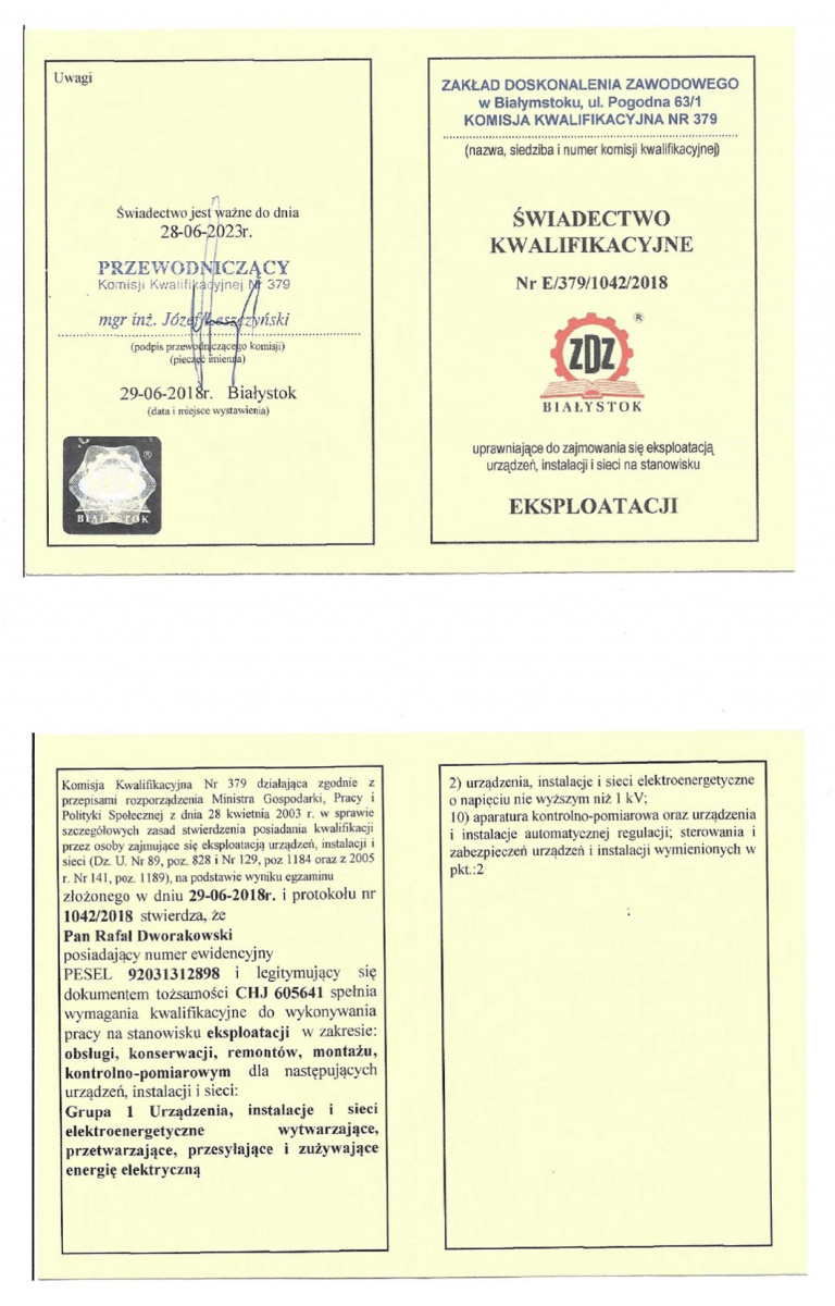 Wykonujemy instalacje elektryczne w technologiach tradycyjnych i nowoczesnych, udzielając na wykonane prace gwarancji. Posiadamy uprawnienia elektryczne eksploatacyjne i dozorowe oraz pomiarowe.